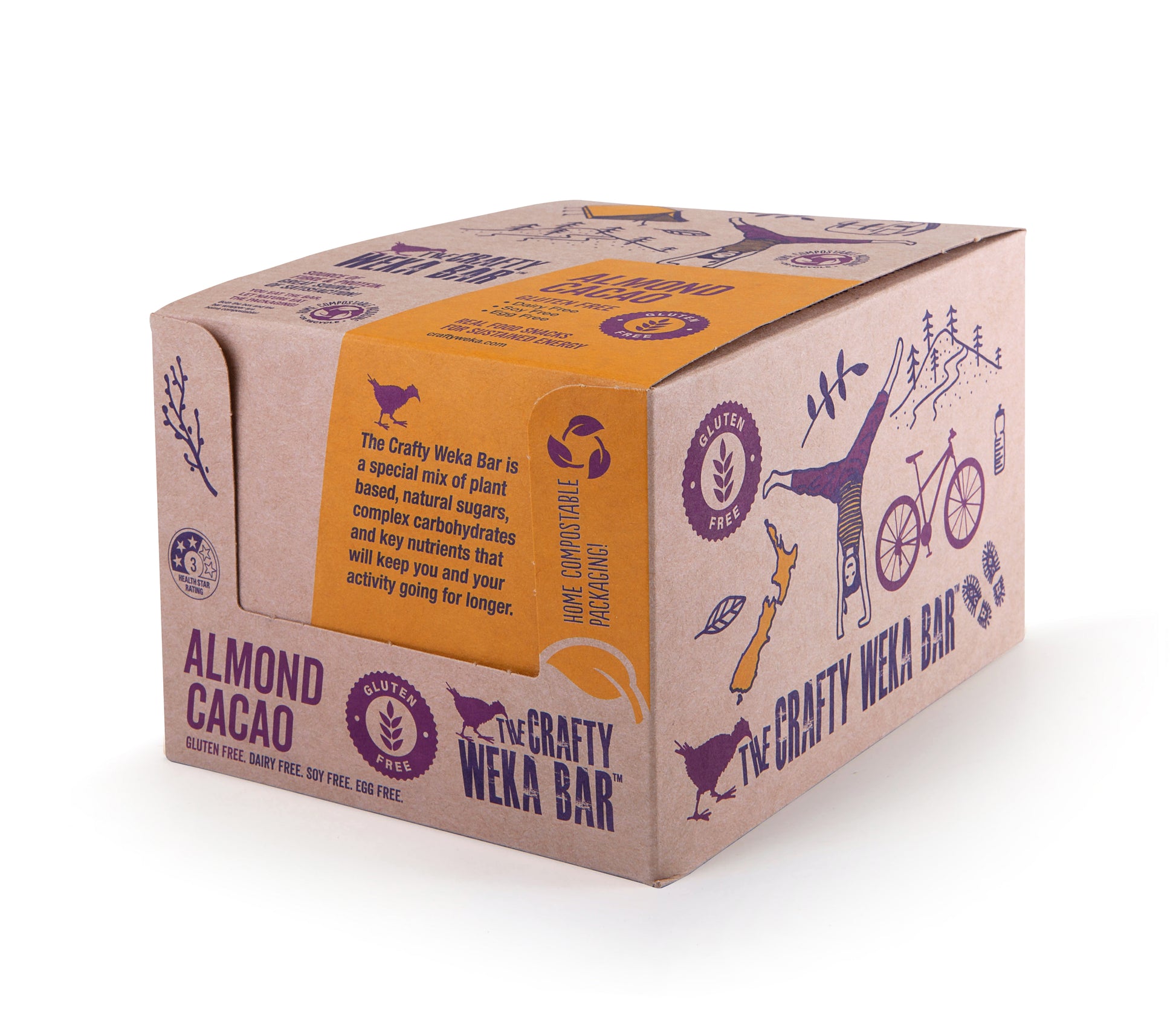 Box of 12x 70g Almond and Cacao Flavour Gluten Free Snack Bars by Crafty Weka